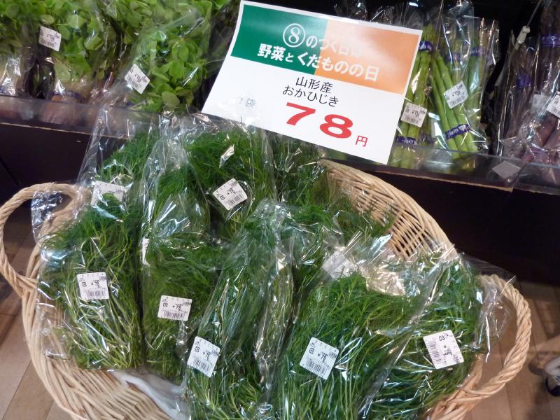 午前中は駅近辺をぶらぶら。十字屋の地下が食料品売り場で、ここは地元の野菜がいろいろあってたのしいぞ。山形ではみつばのことをなぜか「みつぱ」というとケンミンショーで見たことがあるが、確かに「みつぱ」と札に書いてあった。包装は「みつば」になっているのにね・・・後は昨日食べた細竹やおかひじきもあったぞ。あとUFOみたいな形のズッキーニなど、変わった物もあったのでいくつか買ってみる。