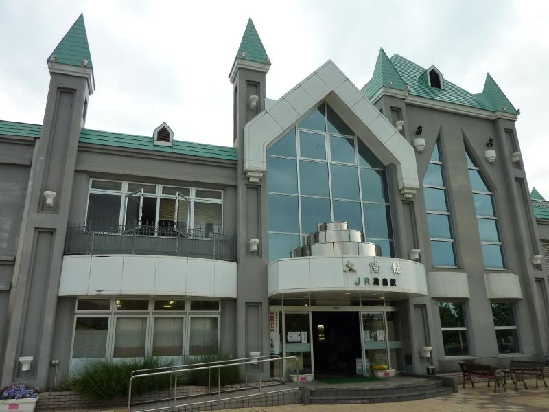 いつのまにやら人がいなくなったな。観光バスの人は時間が限られているからね。さて、ではわれわれも行きますか。ワイナリーを出ると、雨はちょっとおさまって来たかな。帰りに道沿いにあった草にカタツムリがいた。久しぶりに見たな。駅に着くと、そろそろ次の電車が来るころ。特徴的な駅の写真を撮ったりしているうちに、電車が到着。ここから米沢までは2駅。近いね。