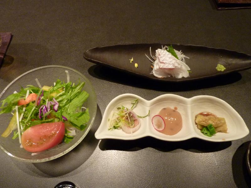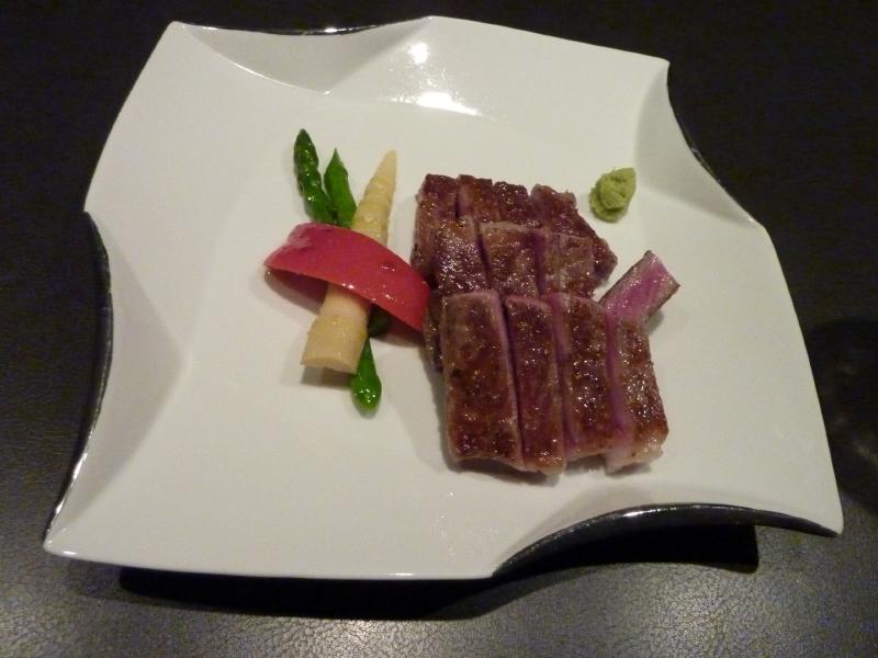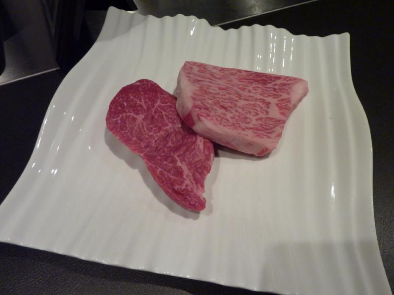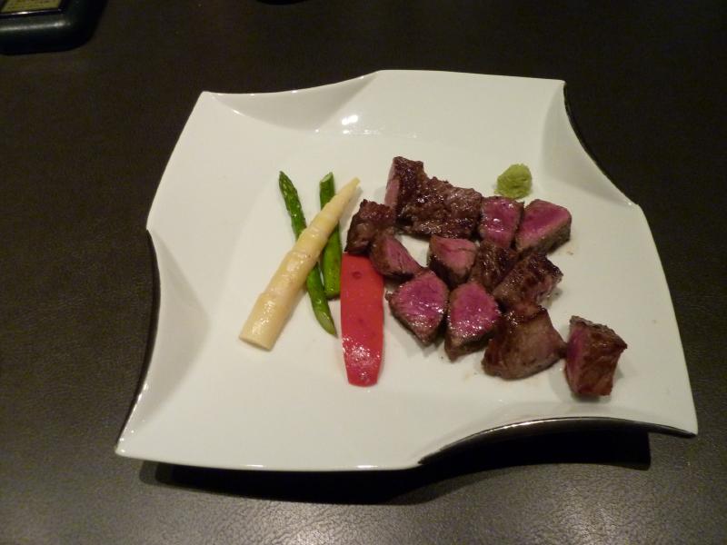 少し寝て、すっきりしたぞ。そろそろ19時、出かけますか。今日は米沢牛のステーキが食べたいのだが、駅からホテルまでの間でも米沢牛の看板がたくさんあった。やっぱり本場だね。その中で、新しめでいいい感じのお店があったので、そこに入りますか。お店の名前は「べこや」、何組か待っている人がいた。ここは焼き肉としゃぶしゃぶとステーキとそれぞれ食べる場所が違うらしく、ステーキのわれわれは意外と早く名前を呼ばれた。ラッキーだね。ステーキコーナーに入ると、そこには大きな鉄板があった。さて、何にしようかな。ランプ・サーロイン・ヒレの順で値段は上がるのだが、実はあまり脂ののった和牛は得意ではない。なので一番赤身が多いランプと、やっぱりステーキと言えばサーロイン、これのコースを頼みましょう。まずはビールで乾いた喉を潤す。最初にはサラダや刺身、前菜3種盛りがでてきた。これらを楽しんでいると、焼く前のお肉が登場。やっぱりランプは赤く、サーロインはサシが入っている。早速お肉が鉄板で焼かれ始めた。おいしそうだなあ。しばらくして、少し赤い状態で完成。野菜もいろいろと焼き上がったようだ。まずはランプをいただく。これはやっぱり赤身のいいお肉という感じで、肉汁も楽しめておいしいです。続いてサーロイン、こちらは脂が甘く、思ったよりはさっぱりとしておいしくいただける。特にワサビがあうね。2種類のお肉を楽しんでいると、やっぱりサーロインの脂がちょっと気になってきた・・・2人なので半分ずつなのだが、それでもこうだとやっぱり赤身が好きなのかなあ。うーん、安上がりな体だ。初の米沢牛ステーキ、おいしくいただきました。