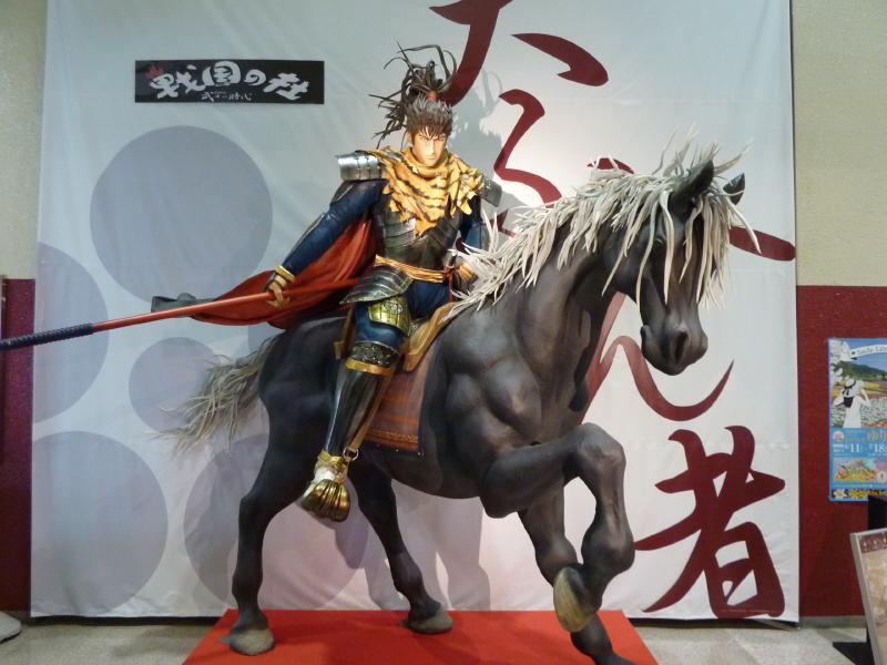 まだ時間がある。ホテルへ戻る途中の道を少し横に入ると、ビルの1Fに「戦国の杜」という施設がある。ここは兼続や前田慶次郎などの武将に関する展示があったり、陶器や和紙の人形がある。写真だが甲冑の展示もあり、兼続は「浅葱糸威錆色塗切札札二枚胴具足(あさぎいとおどしさびいろぬりきりつけざねにまいどうぐそく)」やたらと長い名前がついてる。色や形を表すものなんだろうな。あとは前田慶次郎、往年のジャンプ読者としては「花の慶次」が懐かしいところ。実際はどんな容姿だったんだろうな。さて、そろそろ戻りますか。途中の民家にも兼続の甲冑が展示されていたりと、ここ米沢の街は上杉家の息吹がそこかしこで感じられます。