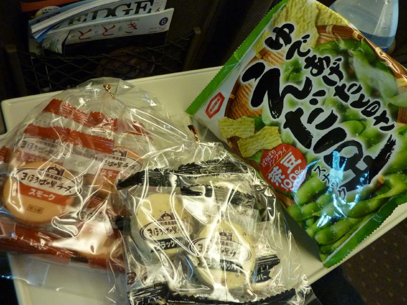 東京駅からはポイントによるアップグレードでグリーン車だ。山形の枝豆スナックや高畠ワイナリーのチーズをつまみに、ビールを楽しみながらゆったり新大阪まで。米沢からの新幹線は長い旅だが、日本がつながっていることが実感できる。