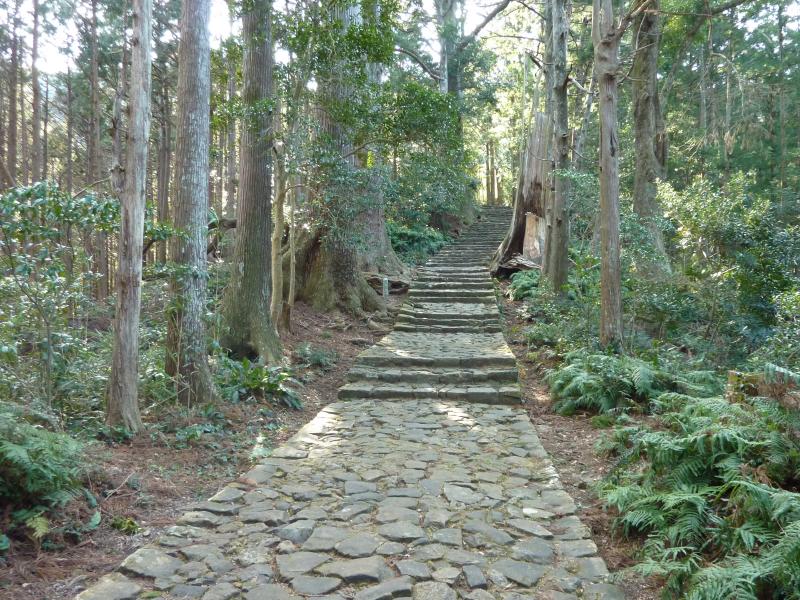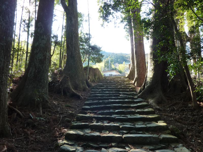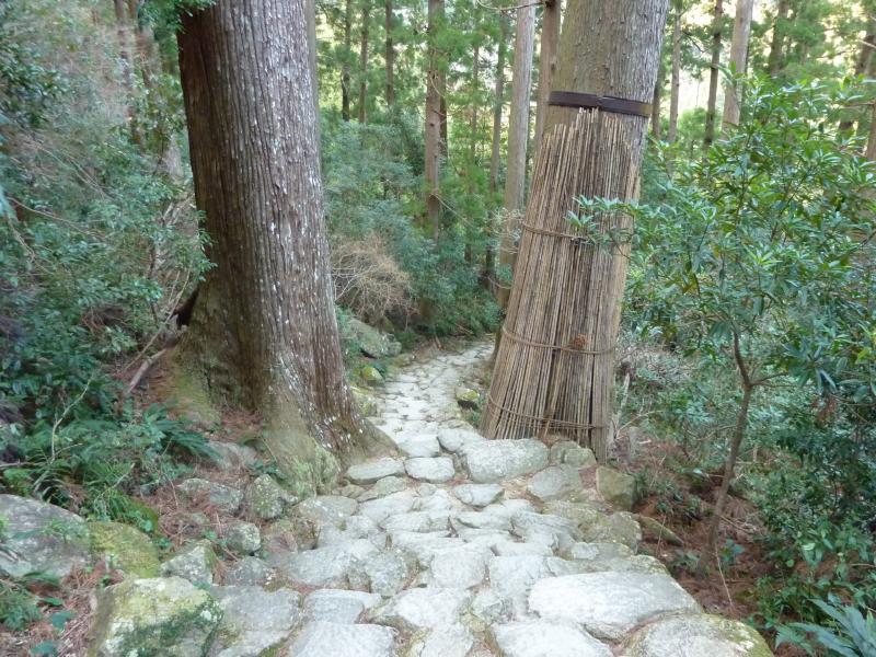 さて、ウォーキングスタートだ。他の人はどんどん登っていくが、われわれは何枚も写真撮ったり景色見たり、いつの間にやら誰もいなくなっていた。みんな早いのね。まずは樹齢800年の夫婦杉がわれわれを迎えてくれた。でかいなあ。人間がちっちゃく見えてしまいます。しばらく行くと多富気王子に到着。熊野古道には王子と呼ばれる石碑があるのだが、これはかつて参詣途中に儀礼が行われた場所らしい。そしてここ多富気王子は、那智大社に向かう最後の王子となるのだ。杉林の中をじっくりと景色を楽しみながら歩いていくと、苔むした石畳が歴史を感じさせていい感じだ。それにしても、このあたりは春はとてもじゃないけど来れない場所ですね。まさにスギ花粉のまっただ中を進むことになるのかな・・・