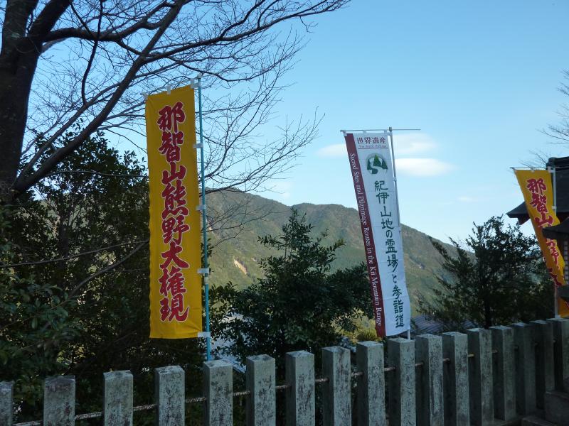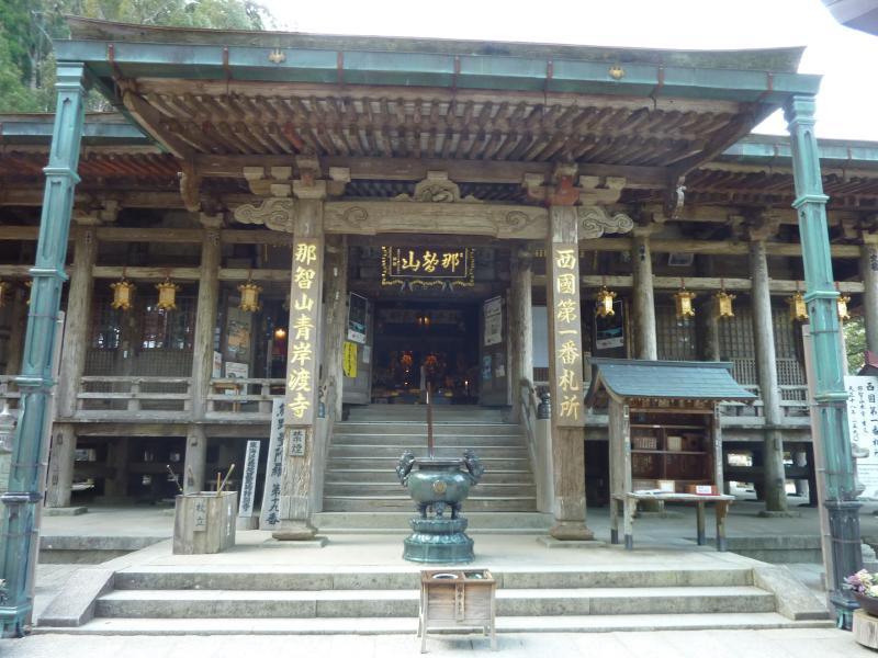 那智大社の奥にある門をくぐると、そこは西国三十三カ所巡礼の第一番札所である青岸渡寺。この辺りはもともと那智の滝を中心にした神仏習合の一大修験道場だったが、明治初期に青岸渡寺と那智大社に分離したということらしい。それにしても、神社から寺社へと来ると全く雰囲気が変わる。神社では神聖な気持ちになるが、寺社では厳かな気持ちになるのはなぜだろう。こちらでもしっかりお詣りをしましょう。