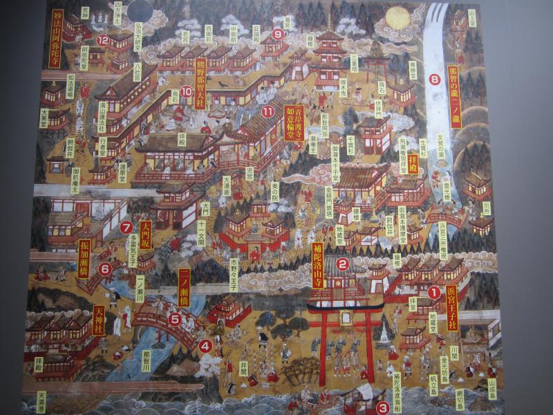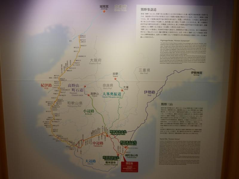 サッカーコーナーの奥には、世界遺産の情報センターがある。ここには熊野古道に関する様々な情報が展示されていて、これを見ると昔の人がいかに長い時間をかけてこの道を歩いていたかが分かる。それでも庶民から天皇・上皇まで、身分を問わずたくさんの人を引きつけていたのは熊野三山が阿弥陀信仰の聖地として強い信仰を集めていたからだろう。そろそろ閉館となるので行きますか。紀伊勝浦駅までは、高校生満載の電車で戻りましょう。