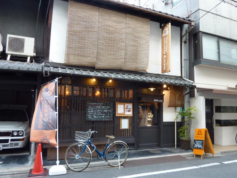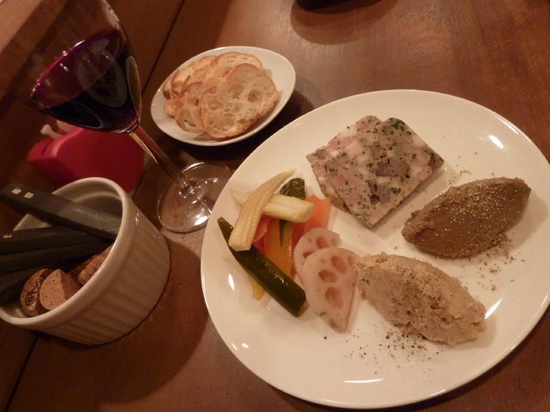 さて、カフェタイムとしましょうか。二条城から烏丸御池までぶらぶら歩き、烏丸から少し入ったところにあるnicotto&mamというドーナツカフェへ。中に入るといろんなドーナツがあり、カプチーノとともに頂きましょう。シナモンとチョコのドーナツで、ほっと一息だ。外は寒かったしね。しばらくのんびりしたところで行きますか。今日はこのあと清水寺まで行こうと思ったが、ちょっと体が冷えたようで、妙に寒く感じる。これはちょっと栄養取って温かくしてからにした方がいいかな。ということで、先斗町にあるla caraというビオワインバーへ。どんなところかと思ったら、とても知らなかったら入らないような細い路地のしかも狭い階段の2階。女の人が一人でやっているお店だ。ビオワインをグラスで頂きながら、ポテトグラタンやリエット、レバーペースト、パテなどワインに合いそうなおつまみを頂く。どれもシンプルでおいしいぞ。常連さんが多い感じだけれど、雑誌に載ったこともあってふらり来る人も増えたとのこと。われわれのようにね。春キャベツのグリルはベーコンとよく合って、ワインといい感じです。さて、栄養補給はいい感じ。ちょっと温まったかな。