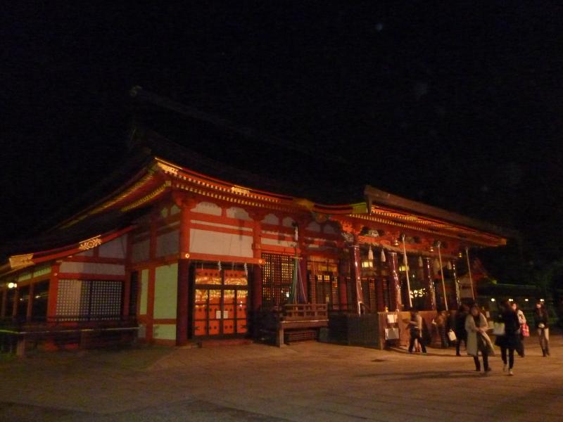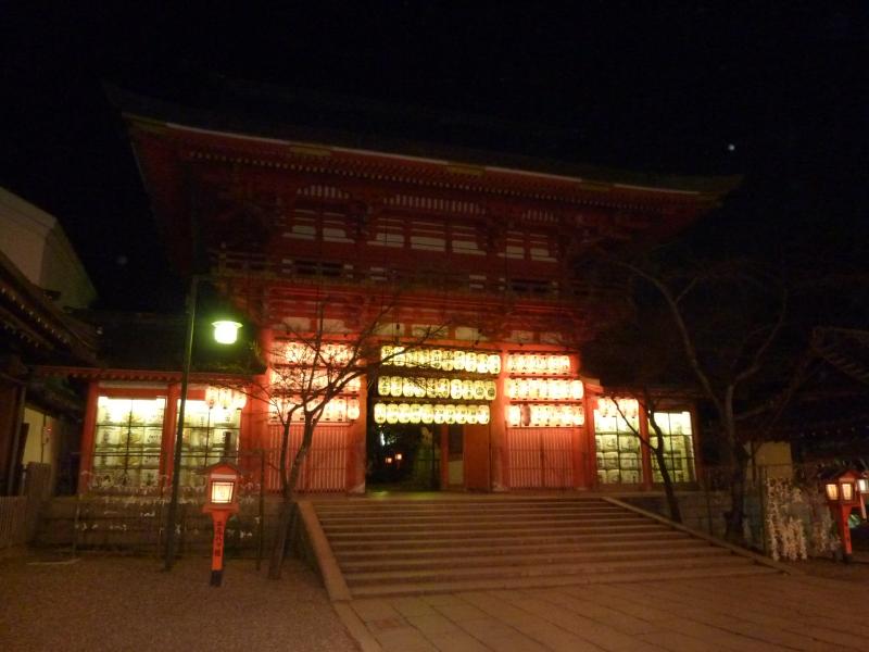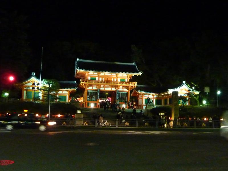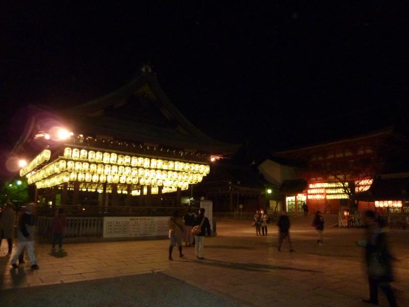 さて、では夜のイベント・花灯路へと行きましょう。鴨川を越え、八坂神社に到着。久しぶりだな。西楼門はライトアップされていてきれいだ。門の前には花灯路の提灯があり、いい感じ。神社の中に入ると屋台がいくつかあり、それを越えると本殿に出てくる。学生時代はこのあたりをよくうろうろしていたのだが・・あんまり覚えてないなあ。とにかく、しっかりお詣りしておきましょう。