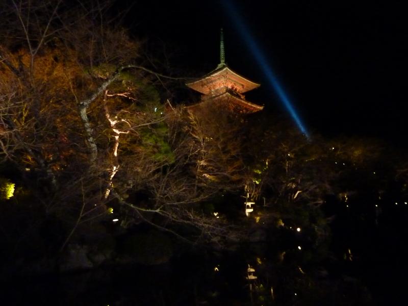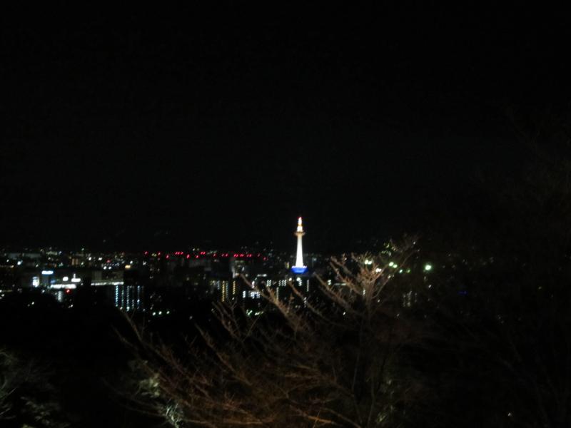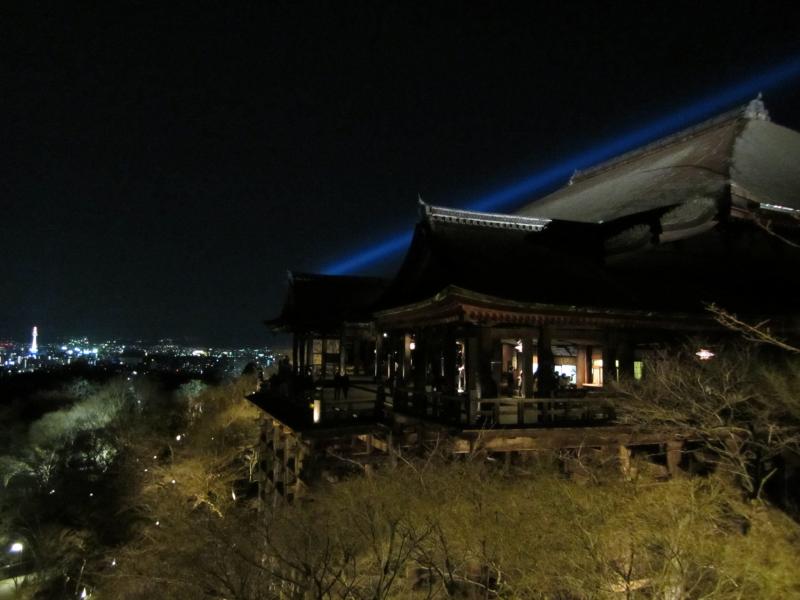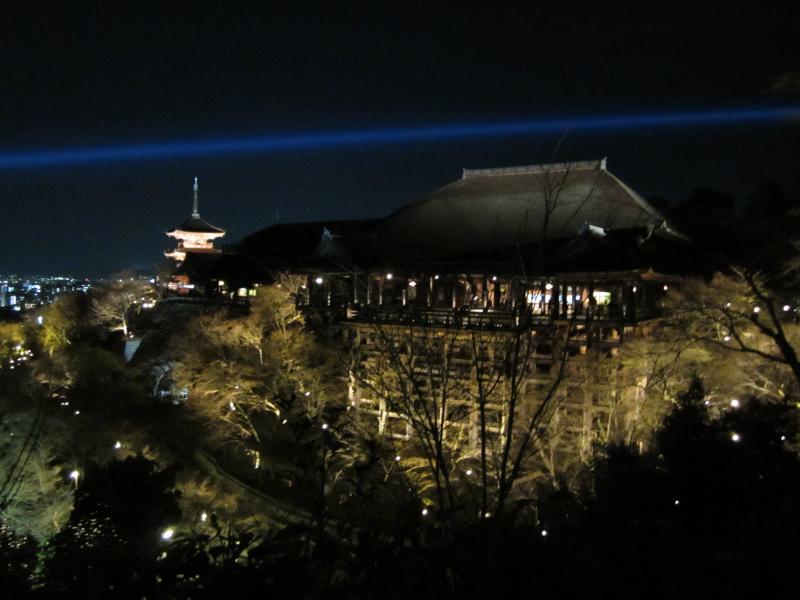 本堂からは、京都市街の夜景が見える。さすが京都らしく今時のタワーマンションのなどは全くなく、京都タワーが一番高い建物かな。やっぱり京都はこれがいいですね。この舞台は13メートルということで、思ったほどは高くないが飛び降りたらただではすまないよね。まあものの例えと言うことで。本堂からさらに奥に行くと阿弥陀堂や奥の院があり、このあたりから本堂を見る景色は定番の美しさ。今はライトアップされた八坂の塔とともに見えているし、これが桜や紅葉の時期になればまた違った美しさが楽しめるのだろう。桜が咲いたらまた来てみるかな。