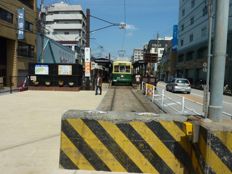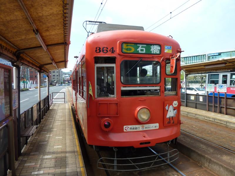 再び平和公園エリアに戻り、原爆落下中心碑へ。ここの約500メートル上空で、あの原爆が炸裂したのだ。この碑の右側にあるレンガの壁は、倒壊した浦上天主堂の一部らしい。当時何もわからない中で被害に遭われた方がいかに多かったことか。冥福を祈ります。さて、そろそろ行きますか。松山町の駅から路面電車に乗る。結構歩いたので疲れたかな。出島までの20分ほど、のんびり行きましょう。