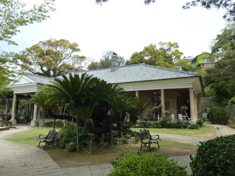 その先には旧オルト住宅がある。園内では最も大きな建物だ。ウィリアム・オルトは、貿易で日本の緑茶を世界に広めた人らしい。その緑茶を九州一円から集めたのは大浦慶。グラバーや岩崎弥太郎などとともに、龍馬伝のシーンが思い出されます。そういうつながりがあるのか。いろいろ知識がつながってくるのはおもしろいなあ。