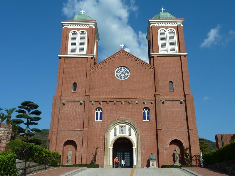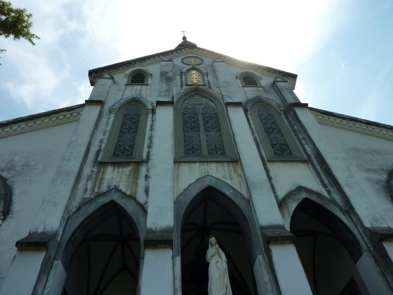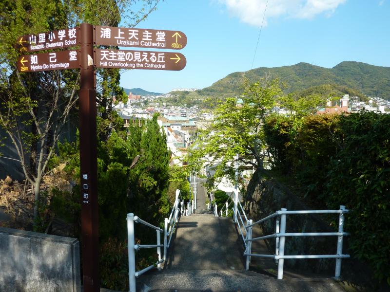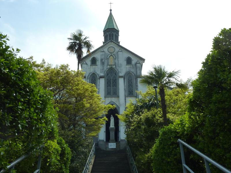 グラバー園を出て、すぐ近くにあるのが大浦天主堂。日本に現存する最古の木造教会で、正式名称を「日本二十六聖殉教者天主堂」という。豊臣秀吉によるキリシタン弾圧の頃、石田三成が大阪や京都で捕縛したキリシタンが長崎まで連れられて磔の刑に処せられたらしい。ここはそんな悲劇の歴史に捧げられた教会堂で、その殉教地にむけて建てられているとのこと。石の階段の上にそびえる天主堂が神々しいな。中は撮影禁止だが、ステンドグラスがとても美しい。