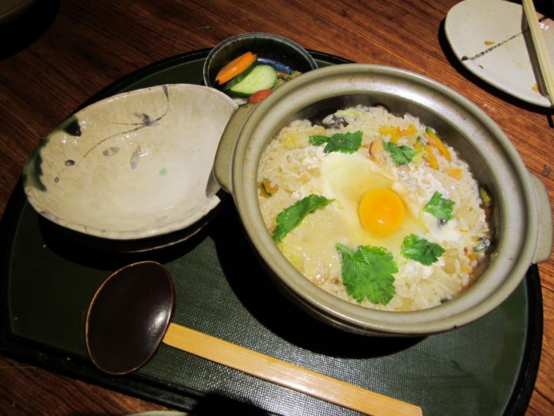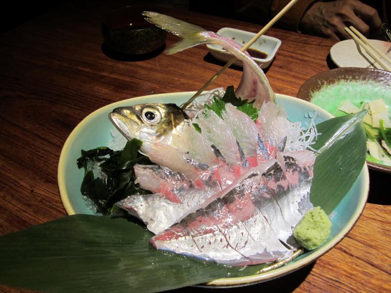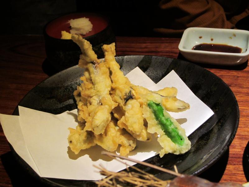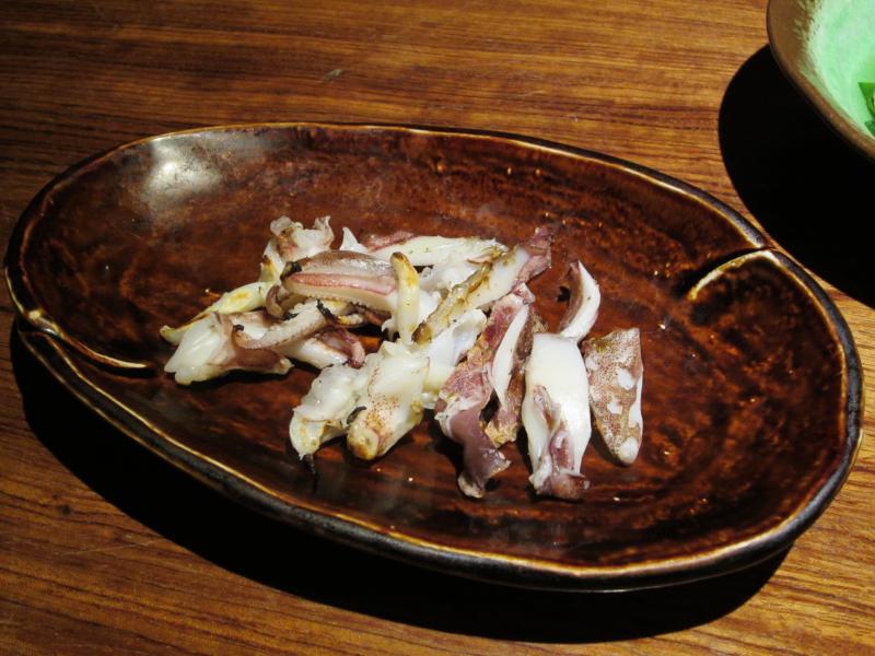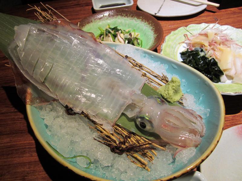 今日はホテル近くの居酒屋さん、雑魚屋にしましょう。入口にあるヤリイカの刺身の写真が実に魅力的。2階に案内され、ゆったり落ち着ける席につく。ほっと一息ですね。今日は日本酒をいただきつつ、突き出しの2品を楽しむ。なかなかいい感じです。しばらくして、到着したのはヤリイカの刺身。さっきまで生きていたので、足が動いているし体の色が呼吸に合わせるかのように変わる。こんな姿になってくれてありがとう、おいしくいただくからね・・・うまいです。こりこりした歯ごたえにイカの甘みがしっかり感じられて、やっぱり新鮮さが命ですね。一通りいただいたあとは、ゲソなどの部分を焼いていただき、2度目のお楽しみ。うまいっす。芹と筍と椎茸のおひたしと、独活と茗荷の酢味噌和え、ともに日本酒によく合います。さて、どんどん行きましょうか。ワカサギの天ぷらに鯵の刺身。どちらもやっぱり新鮮なようで、うまいですね。長崎の地酒もすっきりいい感じです。そろそろ締めかな。長崎には「おじや」というものがあり、鍋の締めのおじやと言うよりは、野菜としっかり煮込んだ雑炊という感じ。すべておいしくいただきました。ごちそうさまでした。