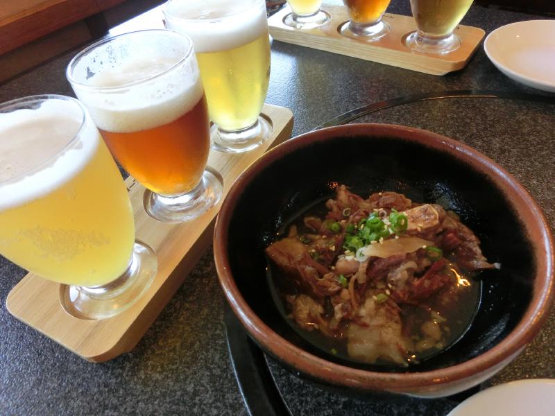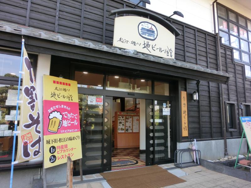 バスは堀川地ビール館の目の前に到着。中に入って、2階に上がるとそこは広い地ビールレストラン。お昼時ということもあり、結構賑わっている。さて、まずは地ビール飲み比べセットをいただきましょう。ピルスナーにペールエール、ヴァイツェンの3種類で、最初のお供が牛すじの地ビール煮。少し甘めの味付けにはペールエールがあうかな。続いて出てきた若鶏唐揚げ、ジューシーな身にはピルスナーがグッド。そしてフランク・ウインナー盛り合わせ、わりとあっさり淡泊な味わいにはヴァイツェンがいい感じ。どれも旨いですねえ。いつのまにやらビールが無くなったので、追加したのはスタウト、いわゆる黒ビール。このコクのある香ばしい感じがいいね。一通りいただいたところで、シメにはやっぱり島根、しじみ汁。大粒のしじみがたっぷり入っていて、これは肝臓に良さそうだ。ゆっくり食べていたせいか人は減ってきたかな。そろそろ行きますか。お店の一階はお土産屋さんになっているが、まだ買うには早いのでざっと下見をする。ごちそうさまでした。