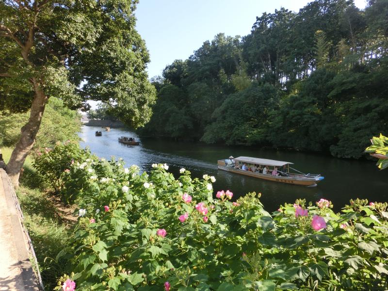 お堀を行く船