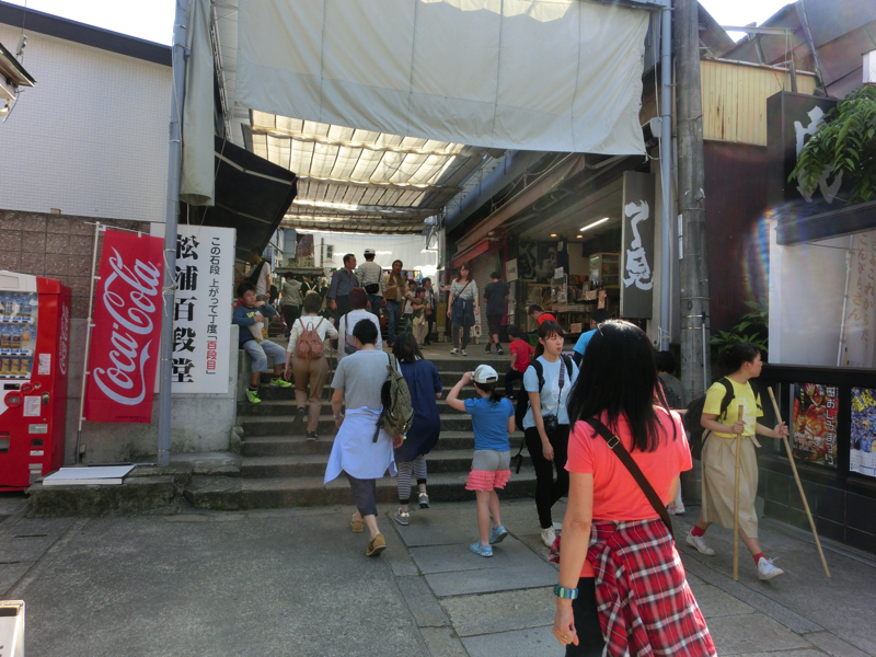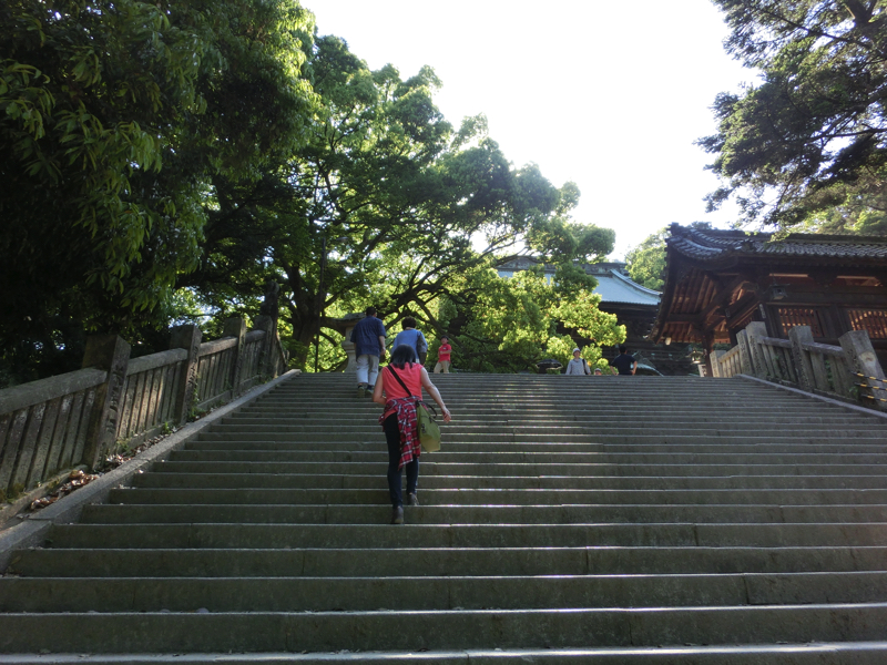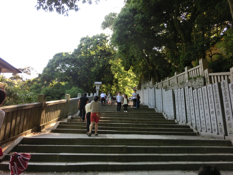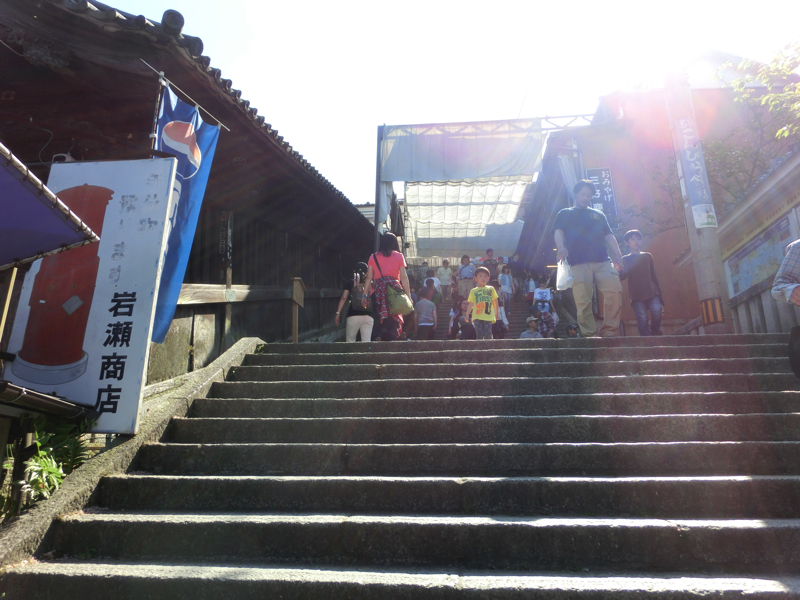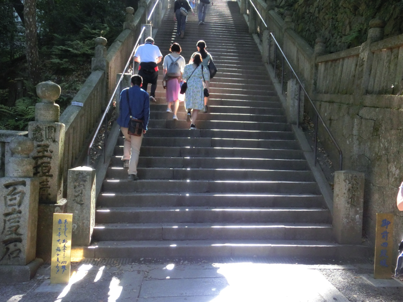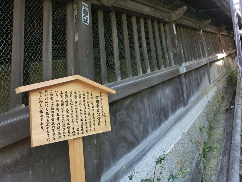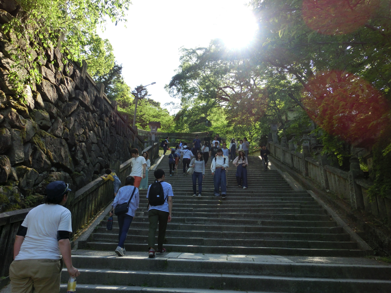一ノ坂の途中にあるのが灯明堂。この中には多数の釣燈籠が吊り下げられ、夜の参道を照らすとのこと。この建物は船の下梁を利用して建てられているとのこと。石段も168段を超えたぞ。でも途中止まりながら登っているので、そこまできつい感じではないかな。