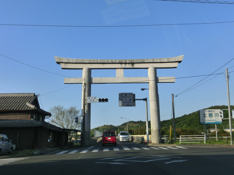 大門までおりてきた。ここで、冷やし甘酒で休憩しよう。優しい甘さが疲れた体にちょうどいい感じ。さあ、もう少しだ。もう夕方なので、今から登ってくる人はあまりいないかな。それにしても、下りるのはすぐだな。1段目の石段まで戻ってきたぞ。参道の人混みもかなり減ったようだ。名物の灸まんを買って、行きますか。駐車場に戻り、車で少し走ると大きな鳥居が。このあたりまで金比羅さんのエリアなのかな。