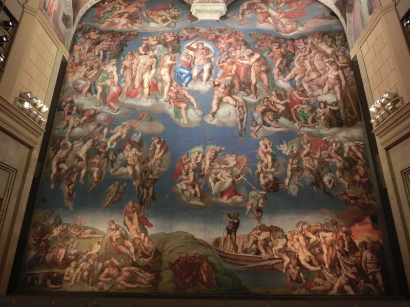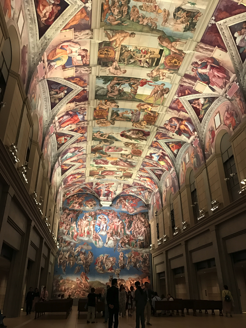 すごいなあ。これはすべて陶板で、要するにすべてコピー。でもこうして陶板にすることで世界中の有名な絵画が見られるわけだし、陶板はほとんど劣化がないらしいので後世に名作を伝えるという役割も担うことができるということ。いやいや、システィーナは本物も見ているが写真が撮れないし人も多かったしなので、こうしてゆったりした空間でじっくりと見られるのはいいなあ。