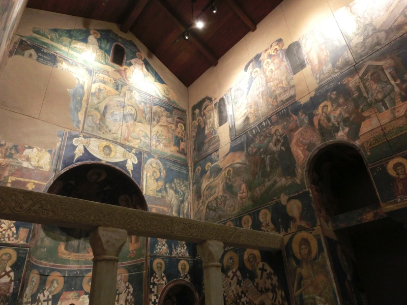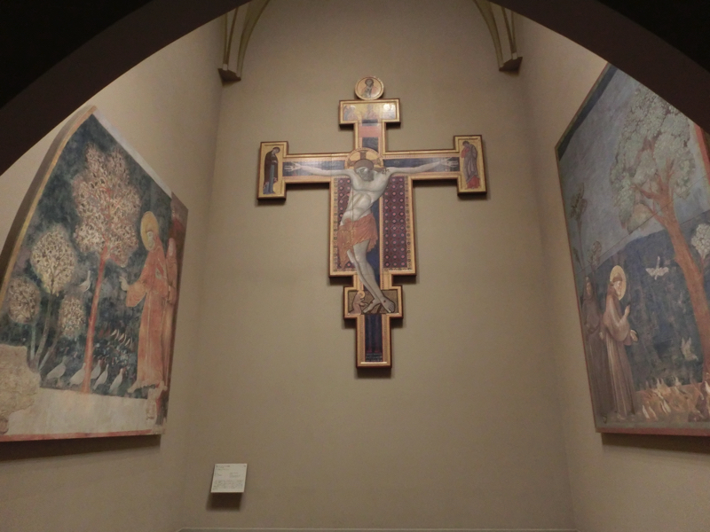 このあとは中世ゾーン。イコンや聖堂の壁画など、100点以上の作品が展示されている。ギリシャやイタリアに加え、エジプトやロシア、トルコやフランスなどの作品も多い。「聖テオドール聖堂」はトルコのカッパドキアにある聖堂だが、壁の質感や床の砂の感じなど、かなりカッパドキアに近い仕上がりになっている。実際に行ってみたいな。この中世ゾーンはキリストを描いた作品が多くある。シエナとかアッシジとかピサとか、いろんな街の美術館にあるんだね。