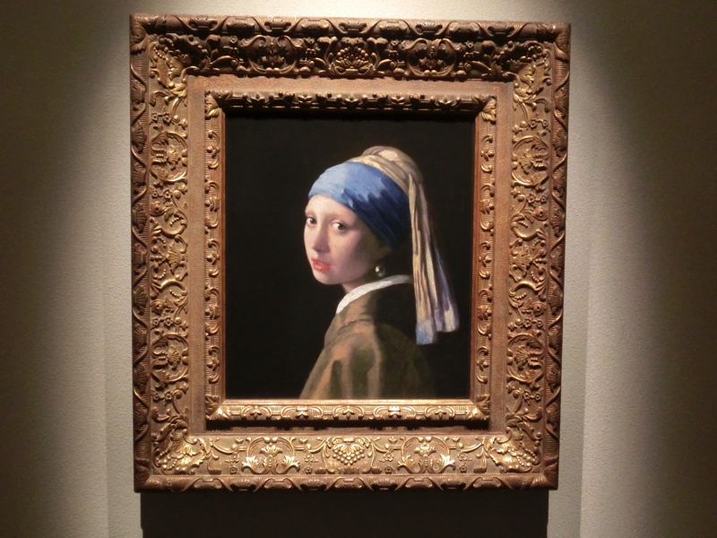 続いてはフェルメールの部屋。中央にあるのがあの有名な「真珠の耳飾りの少女」。フェルメールといえばこれ、漆黒の背景と青いターバンが印象的だ。他にも「デルフトの小路」に「デルフトの眺望」、「手紙を読む女」に「牛乳を注ぐ女」。いずれもオランダにあるので、これは本物を見て見たい。