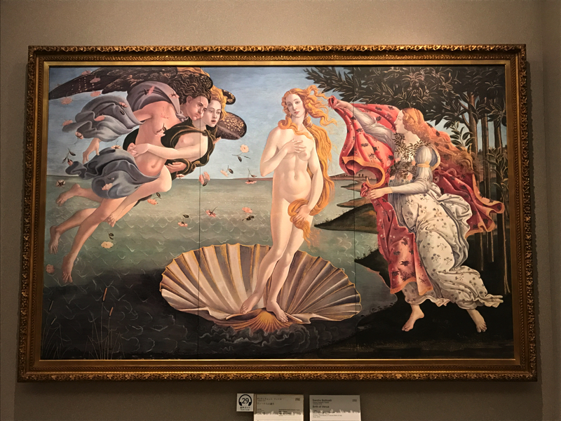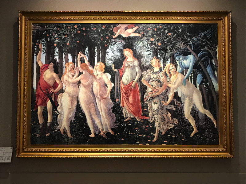 その先にはボッティチェリの有名な2作品、「ヴィーナスの誕生」と「春(ラ・プリマヴェーラ)」。フィレンツェのウフィッツィで見たぞ。陶板の鮮やかな色彩がより作品を美しく見せている。いいですね。そしてヴィーナスが三作品、今はそれぞれイタリア、ドイツ、オーストリアの美術館にあるとのことで、こうして並べてみるのも美しさがよくわかる。