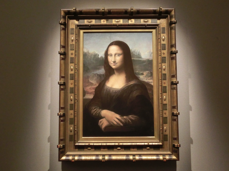 いろんな作品があって楽しいな。ちょっと気になった絵を見ると、どちらもブリューゲル(父)の作品でした。今まで知らなかった作者だが、そうした作品もしっかり見られるのがいい。どうやらウィーンやベルリンの美術館にあるらしく、そういえばドイツ語圏の街で美術館って行ったことないなあ。機会があれば是非。そして言わずと知れた「モナリザ」、ルーブルで見たときは人ごみの中でなかなか近寄りがたかったが、ここでは至近距離でじっくりと。まあ、陶板だけどね。