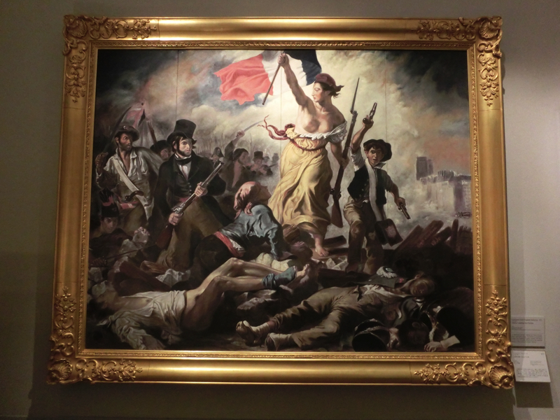 さあ、B1へ。ここは近代の作品が多数展示されている。やっぱり新しいだけに色合いや筆致など、鮮やかな作品が多い。宗教的な絵画はあまりなく、動物や景色、人物などを写実的に描いたものが多く見られる。ベネチアの景色を描いた絵があるが、ほとんど景色は変わっていない。でも人の服装などは異なっているので、昔の様子をこうして絵で見るのも面白いな。そして有名どころといえば、ドラクロワの「民衆を導く自由の女神」そしてマネの「笛を吹く少年」。それぞれルーブルとオルセーだよね。