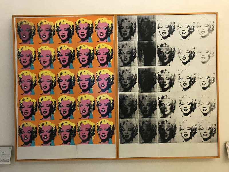 そして1F、現代およびテーマ展示。まず目に入るのはピカソの「ゲルニカ」。間近で見ると迫力があるなあ。これはマドリードの美術館にあるんだね。あと現代といえば、やっぱりウォーホルかな。たくさんのマリリンが並ぶ姿が印象的。あとはシャガールとかリキテンスタインとか、テーマ展示での騙し絵とかレンブラントの自画像とかいろいろあるのだが、閉館時間が迫ってきたこともありざっと見てまわるくらいになりました。やっぱりこういう場所は時間がかかります。