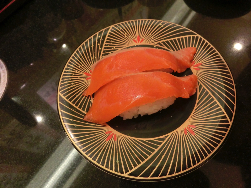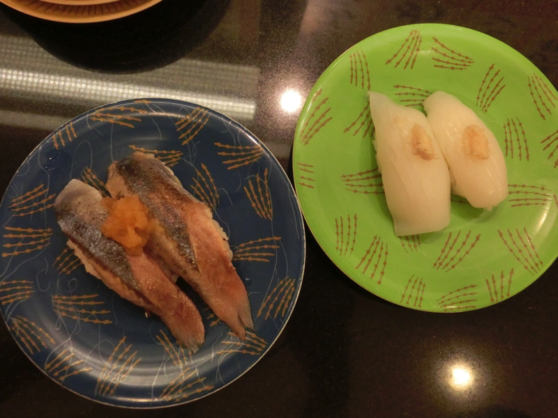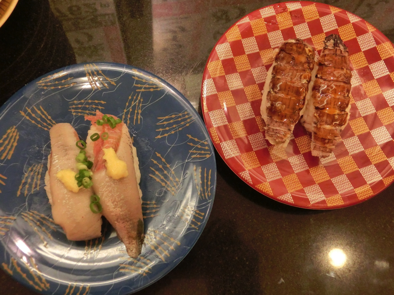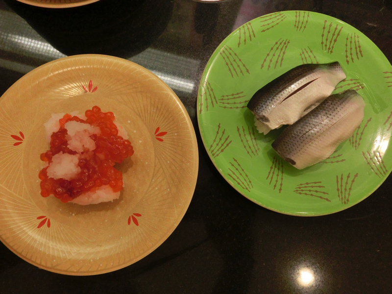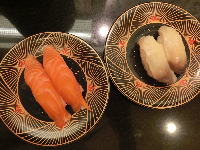 さて、改めて和楽へ。入ってみると少し番号が過ぎてしまっていたが、次に呼んでもらいようやく席に着く。さあて、どうしようか。まずはおすすめの、ヒラメとソイ。どちらも白身だが、脂がのっていてそれぞれおいしい。やっぱりこの店はおいしいな。目の前を回っていくのも新鮮でおいしそうなので、紅鮭をいただいてみる。サーモンはよく食べるが、紅鮭って珍しいな。そうか、紅鮭ってお寿司でもこんなにおいしいんだ・・発見。その後も炙りサンマ、筋子、生イワシなど新鮮だからこそのお寿司をいただく。どれもおいしいなあ。イカやタコもいい歯応えだし、ホッキ貝やエンガワもうまい。よくあるエビも、見た目が美味しそうなので食べてみたらプリプリ。いろいろ食べてお腹がいい感じになってきたので、そろそろ締めますか。最後にもう一度、ということでヒラメと紅鮭で紅白締めとしよう。久しぶりの小樽のお寿司、堪能しました。ごちそうさまでした。