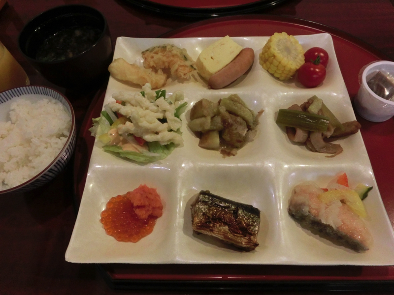 6時起床、8時前に朝ごはんへ。多くの人が泊まっていたようで、テーブルはほぼ埋まってる。この後から来た人は、結構待っていたようでした。鮭の南蛮漬けやサンマ醤油煮、タラコやいくら、塩辛など北海道らしいおかずをたっぷり頂く。つい食べ過ぎてしまうが、朝だからOKと自分に言い聞かせてお代わりしていただきましょう。