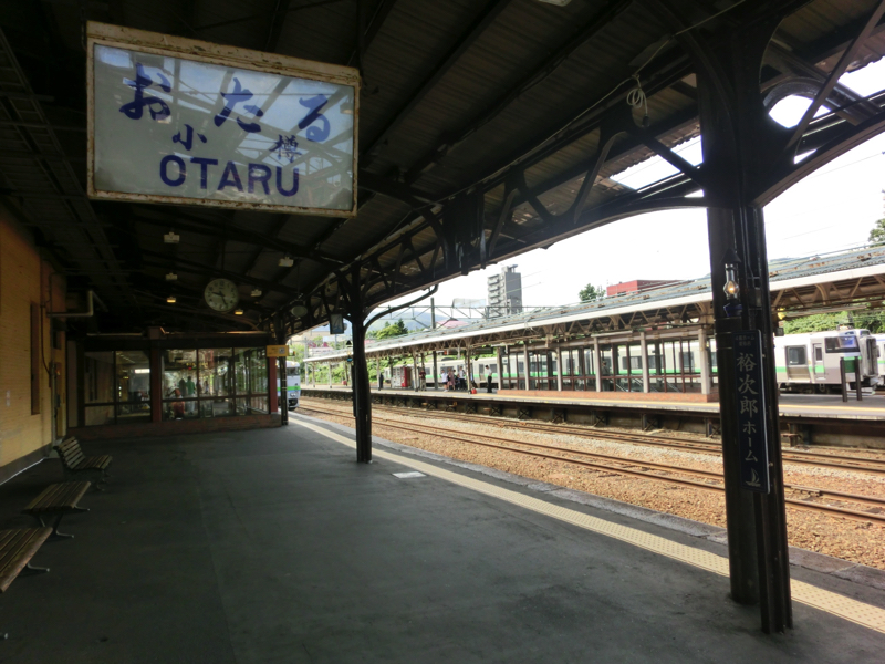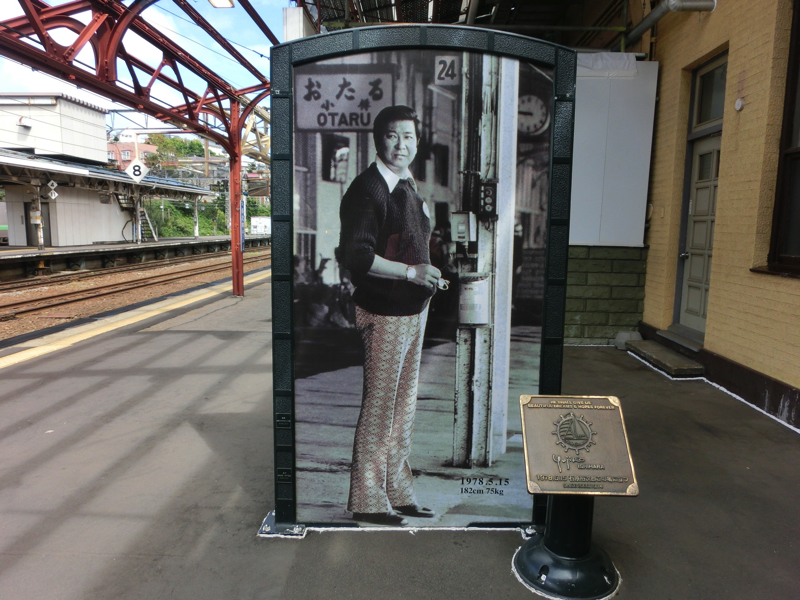 さて、今日は余市へと行こう。あまり電車の本数がないが、9時38分がちょうどいい。小樽駅のホームには、在りし日の石原裕次郎の写真が。この写真は確実に年下のはずだが、この貫禄は何?しばらくして、電車が到着。ほぼ席は埋まったくらいの混み具合で出発だ。