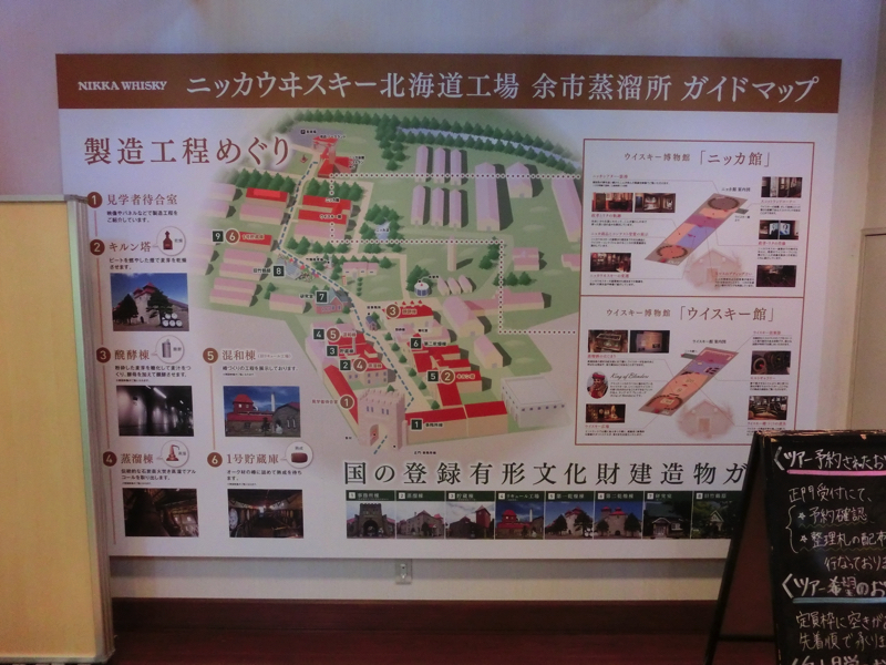 30分ほどで余市駅に到着。駅前から、朝ドラのマッサンとウイスキーで溢れている。駅から歩いてすぐにところにあるのがニッカウイスキーの余市醸造所。ここはウイスキーの製造過程を見学でき、最後に試飲もできるので、10時30分から回に参加しよう。