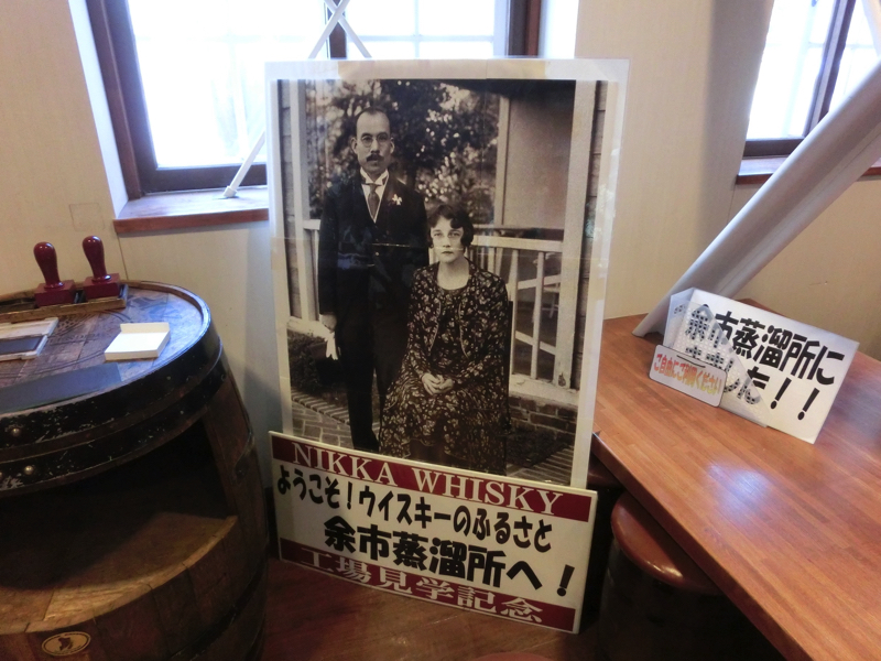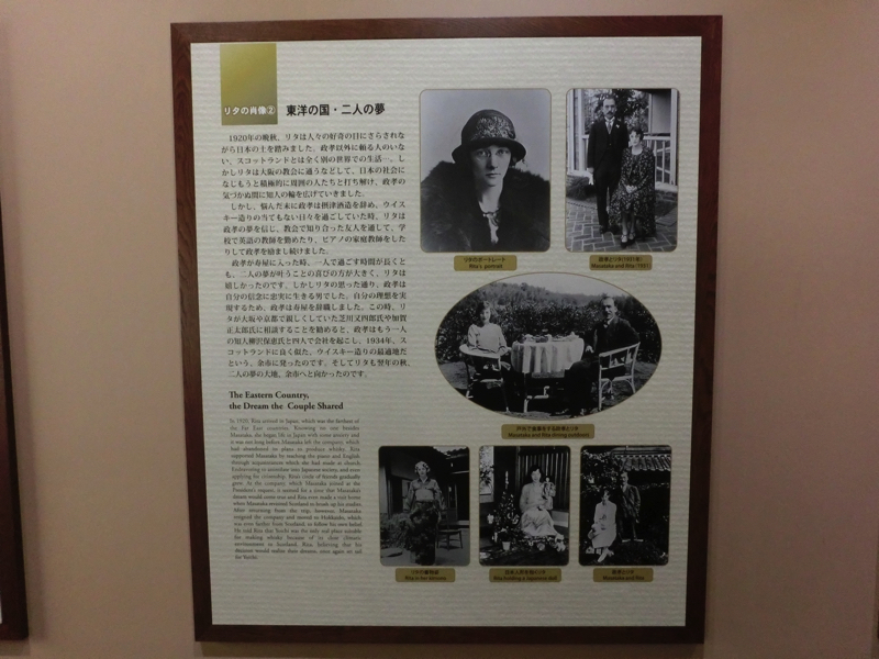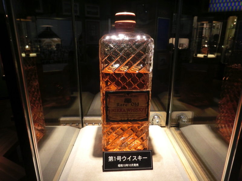 さらに進むと、竹鶴夫妻に関する展示が。あの時代に遠い日本まで来たリタの苦労は大変なものだったんだろうが、マッサンこと竹鶴政孝のウイスキーにかける情熱はすごかったんだろうな。二人の人柄が偲ばれる展示品が多数ありました。第1号のウイスキーボトルがあったが、ガラスに刻まれた斜めのラインが重なって格子状に見えるのがとても美しい。