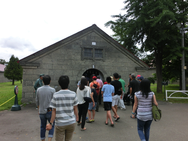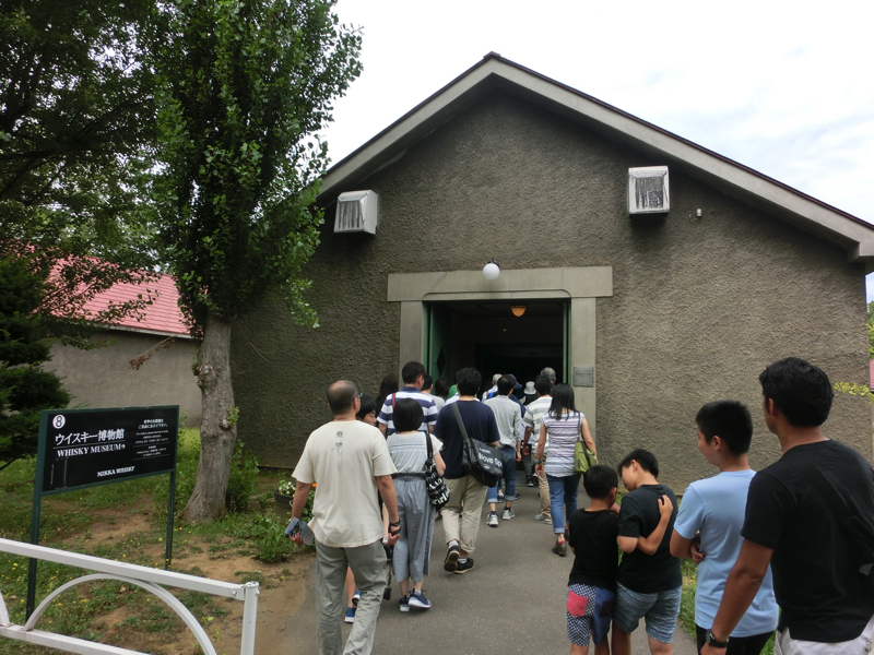 続いてはリタハウス。今はそう呼ばれているが、もともとここは研究室。たくさんのウイスキーがここで研究され、世に送り出されたとのこと。その先には旧竹鶴邸。夫妻の私邸を再現した建物とのことで、玄関ホールまでは入ることができる。その横にあるのが1号貯蔵庫、たくさんの樽が保管されている。入り口からはよくわからないが、奥行きは50メートルほどあるらしい。