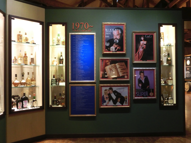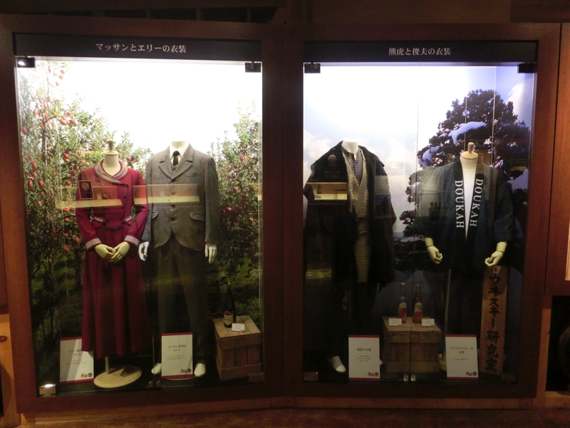 その次は過去のポスターやコマーシャルなど。白黒の時代からのコマーシャルを延々と流していて、70年代の後半になると記憶にあるものも出てくる。若い草刈正雄がいたり、女房を酔わせてどうするつもりの石田ゆり子など、懐かしいなあ。出口近くには、マッサンのドラマで使われた衣装が展示されている。まあ、見てはいないんだが、これだけ展示をみると見た気分になってくる。