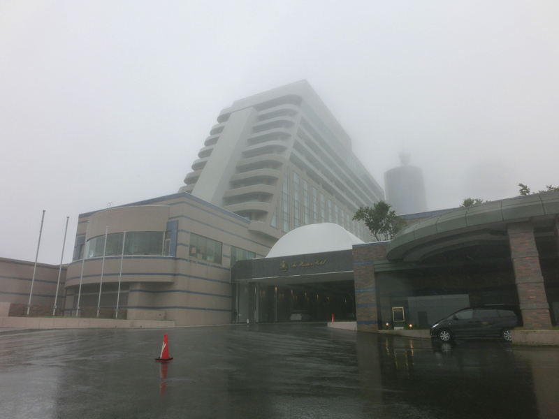 広いベットでゆったり眠れた。でも外は、相変わらずの雲の中。雨のようだし、今日はこのあと湖が見えることはないだろうな。8時過ぎに朝ごはん。ビュッフェ・和食・洋食からの選択だが、やっぱりビュッフェでしょう。1階の宴会場が朝食会場で、とても広い場所だ。積丹が完全和食だったので、洋食モードの方が強いかな。ということで、サラダやハム、チーズなどをまずいただき、いろんなパンやベーコン、オムレツなどをしっかり味わう。パンはホテルのベーカリーのようで、コーンパンがふわふわでおいしいです。フルーツにヨーグルトまでいただき、満腹です。毎朝よく食べるなあ。