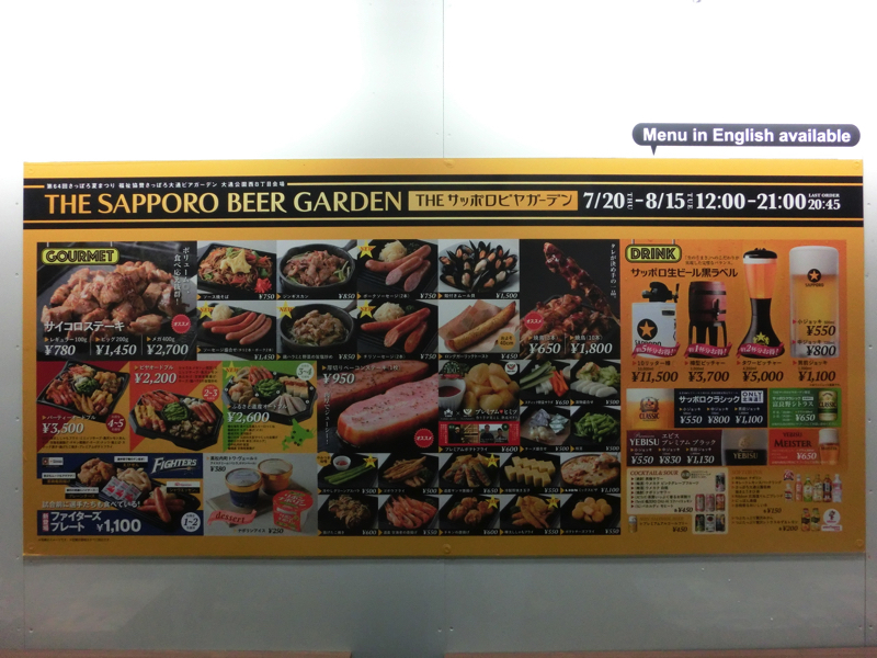 サッポロビールのメニュー