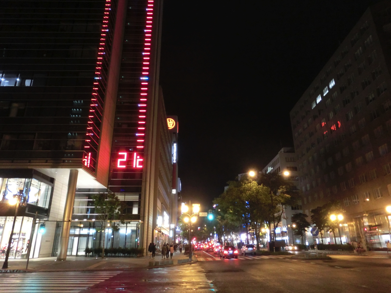 テレビ塔が見えるところまで来た。青を基調としたイルミネーションが綺麗だな。写真を撮ろうと近づくと、オレンジ色に変わった。また青に変わるかな・・このあとは変わりませんでした。オレンジなので東京タワーのようだが、基本色はこれなのかな。それにしても、今の気温は21度。気持ちがいい。