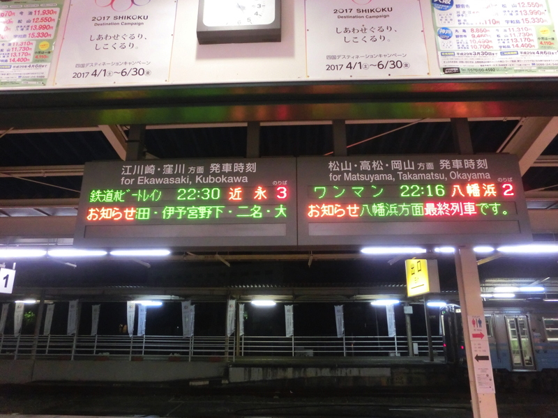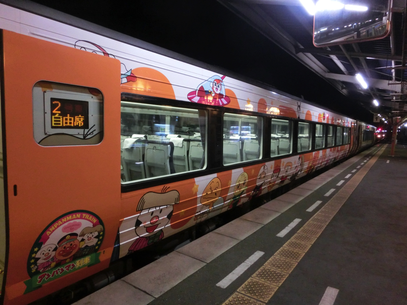 そろそろ行こうと思っていると、隣のホームに来たのはアンパンマン列車。これも高知だよね。そうか、宇和島にいれば鉄道については高知の楽しみも味わえるんだ。アンパンマンに特に思い入れはないが、こういう車両は楽しいです。もうここまでかな。ではホテルに戻りますか。