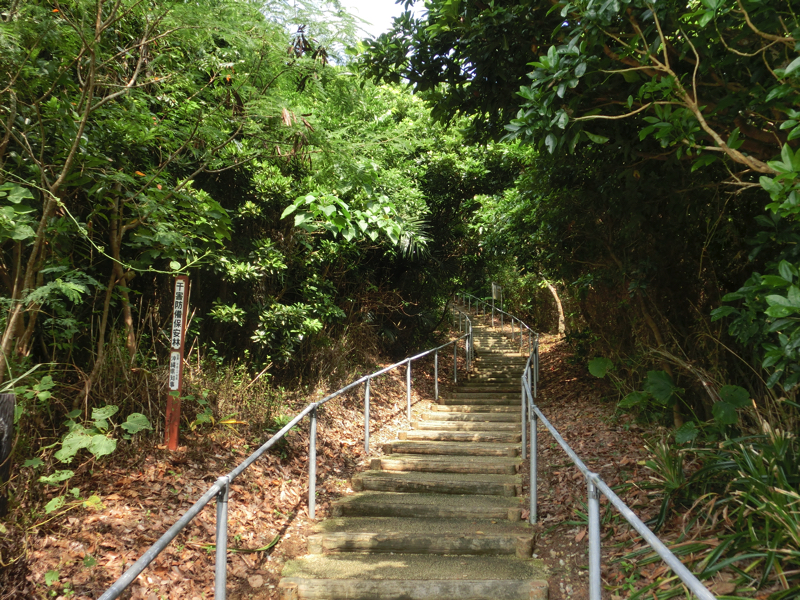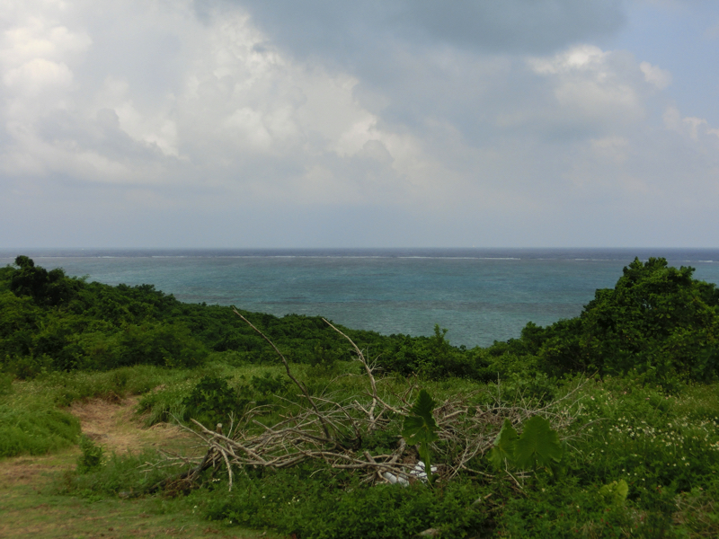 展望台の300段ほどある階段を上る。頂上近くまでは鬱蒼とした樹々の中を登っていくが、突然景色が開け、360度見渡すことができる。東には竹富島、西には西表島が見えている。北には鳩間島が見えるはずだが、うっすら曇った今日の天気ではちょっと無理かな。南には黒島が見えてはいるが、天気が良ければ遥か向こうに見えるはずの波照間島。明日天気が良ければ行きたいものです。しばらくこの景色を楽しむ。