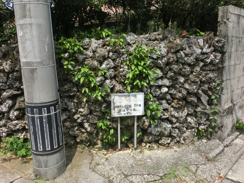 この後は、小浜島の集落へと入る。人通りはほとんどないが、赤い瓦屋根に門にはシーサーという沖縄らしい民家が並んでいる。この辺りは竹富島とも似た感じだな。そんな中でやってきたのがNHKの朝ドラ「ちゅらさん」の撮影地となった場所。「こはぐら荘」という民宿としてのロケ地だが、実際は普通の民家で今も人が住んでいるとのこと。なのでもちろん中には入れないので、外から写真だけ撮らせていただきます。