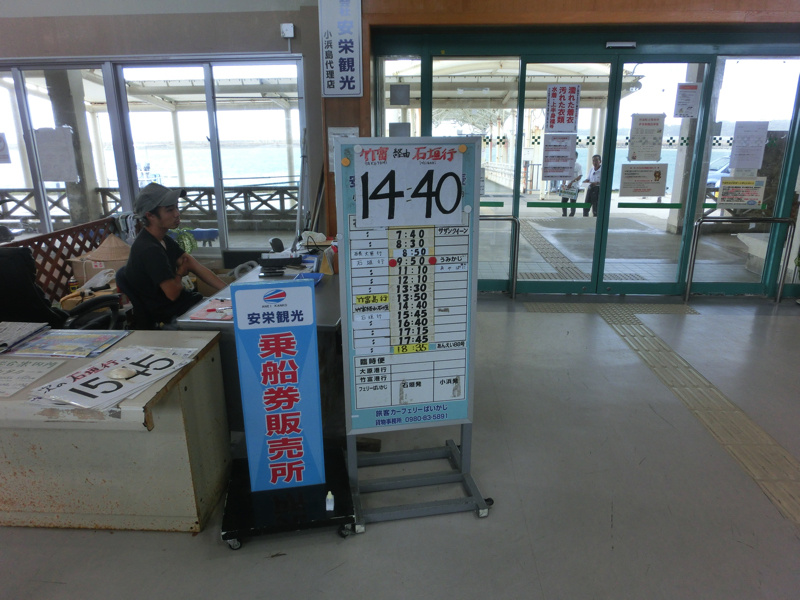 港の待合室に行くと、14:40発の船がまもなく乗船開始。ちょうどよかったな。行きとはタイプの違う船で昨日竹富島に行く時と同じだと思ったら、この便は竹富経由石垣行きでした。わりと席は埋まっているが、竹富で降りる人もそれなりにいるようでこの時間だったら確かに島のはしごもできるよね。なるほど。石垣に到着し、まずはホテルへ。今日は3人部屋しか取れなかったが広くてゆったりしているのでいいかな。ではしばし休憩。とはいえ一つ重要なことは波照間レンタカー。昨日はいっぱいだったが、今日も一つ目はいっぱい、そして二つ目・これが最後の電話というところだったが無事に空きがありました。といこうことで波照間へのハードルを一つ越えました。