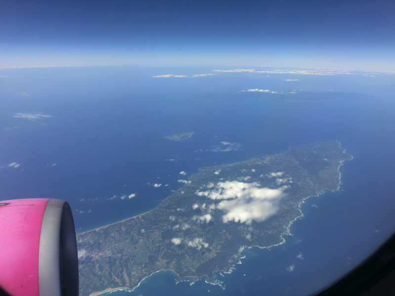 20分ほど遅れ、関空行きは出発。機内はほぼ満席だ。窓際席なので、途中眠りに落ちながらも外の景色をみる。途中にいろんな島が見えてくるので頭の中の地図と合わせてみよう。でも思ったよりも早く四国沿岸についたようで、高知の四万十川や徳島の吉野川がよく見える。鳴門大橋もよく見えたし、関空への着陸直前には明石海峡大橋もよく見えた。今日は見通しがいいのかな。無事に到着し、LCC用のターミナルの長い距離を歩く。荷物を受け取り、エアロプラザまでバスで移動。