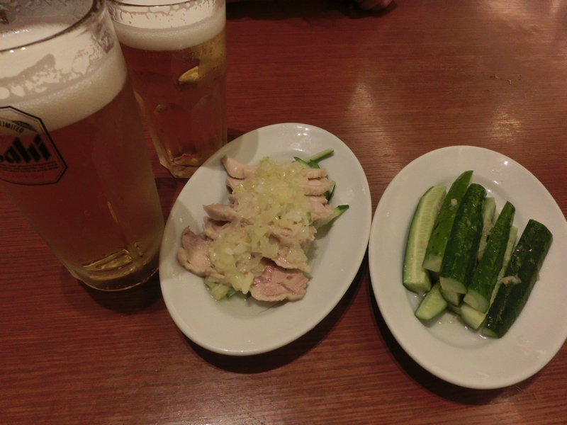 ビールとねぎ鳥にきゅうり