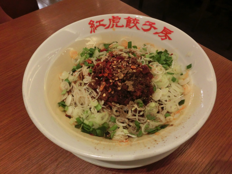 時間は昼ごはんどき、お腹がすいた。エアロプラザのお店が今ひとつなので、空港ターミナルへ。今から出発する気分になるね。レストランフロアに行き、中華をいただきましょう。紅虎餃子房というお店に入り、久しぶりにオリオンビールではなくアサヒビールで旅の無事終了に乾杯。あとはエビシューマイや餃子などをつまみ、そして汁なし担々麺。あまり辛くないのを選んだつもりが、十分辛かったです。ごちそうさまでした。