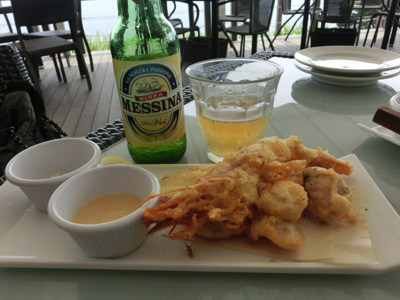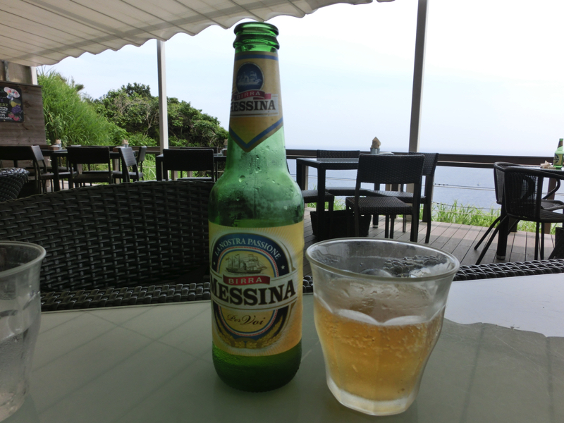 さらに登っていく。するとどうやら一番の高台まで来たようで、このあたりにはちょっとした広場やレストラン、おみやげ屋さんなどがある。行かなかったが、サムエル・コッキング苑という庭園などもあるようで。ではここでお昼ごはんにしよう。IL CHIANTI CAFEに入り、海に面したテラス席に案内された。これは気持ちがいい。まずはイタリアビールで喉を潤し、そのビールとセットになっているフリット盛り合わせ。エビや魚、野菜などがさっくりして、軽く塩で食べるのがうまいです。そして江ノ島といえばやっぱりしらすピザ、たっぷりしらすとトマトソース、薄めの生地がいい感じ。こうしていると、南イタリアが懐かしくなるね。食後にはエスプレッソをいただき、ごちそうさまでした。