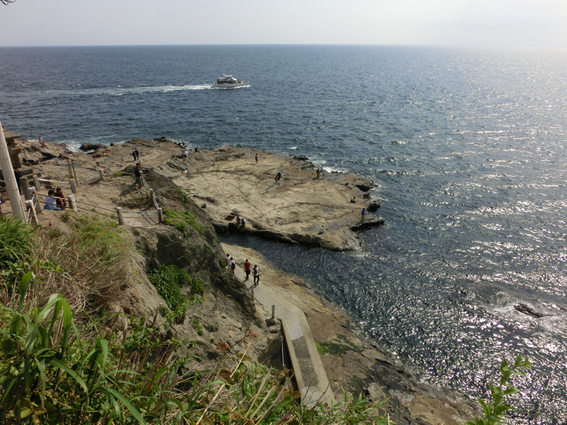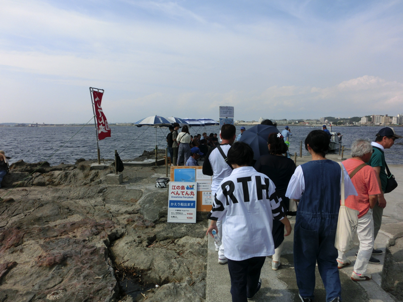 この岩場には船着場があり、これで江ノ島に渡る橋まで戻ることができる。ちょうどいいな。この船を使えば、奥津宮あたりにある民宿に泊まることもできそうだ。江ノ島をちゃんと回ったのは今回が初めてだが、思ったよりもずっと楽しめる場所でした。また来れるかな。