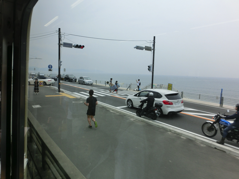 では江ノ電へ。そろそろお店も開きだす時間で、人も増えてきたようだ。江ノ電から来る人が多いのでちょっと逆流気味で江の島駅に到着。江ノ電から見る景色はやっぱり今日は曇り空。昨日あんなに晴れていたのにね。鎌倉高校前駅の踏切にはすでに人が集まっているが、やっぱり昨日の青い海の方がいい景色だったな。ラッキーでした。
