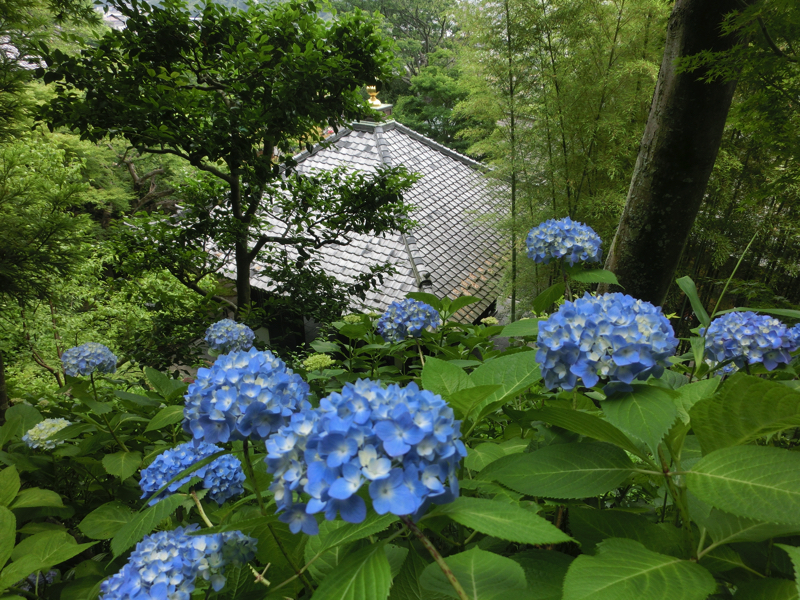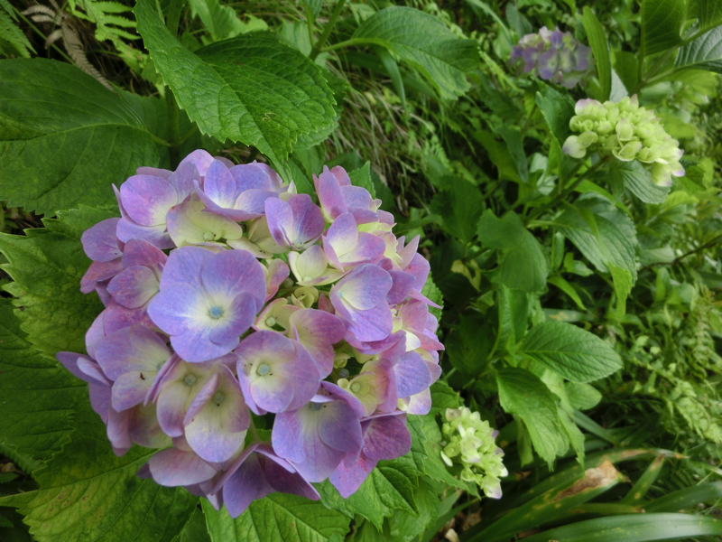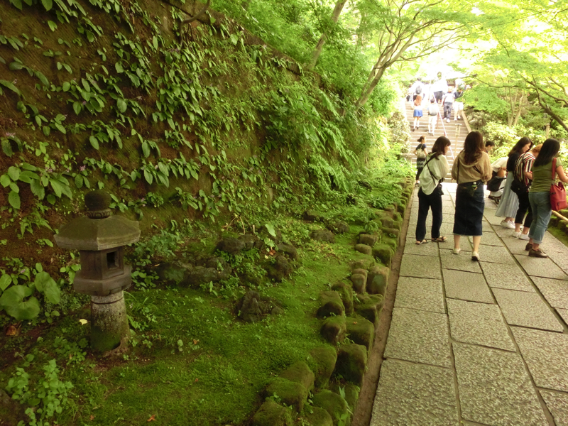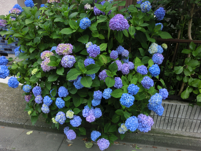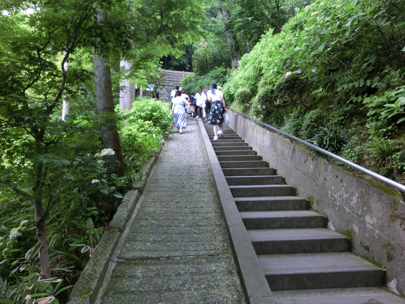 ではあじさい路へ。この道沿いには40種類以上のあじさいが咲くらしく、6月初旬の今はちらほらと咲き始めた頃。それでも青や紫、ピンクなど色とりどりのあじさいがところどころに咲いているし、額あじさいがまるで蝶のように咲いているのも楽しめるし、それなりに見応えがあったかな。おそらくあと半月ほど経つと最も満開になるんだろうが、きっとその時はすごい人なんだろうな。鎌倉にはあじさいのイメージがあったので、ちょうどこの時期に来ることができてよかったです。