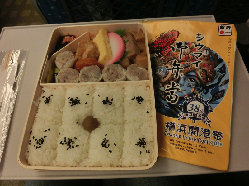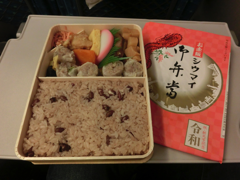 大船駅から新横浜駅へ。新横浜からの新幹線切符だと横浜市内は含まれるが、大船駅はぎりぎり範囲外。なので一駅分だけ電車賃がかかるわけです。新横浜で買う駅弁は、やっぱり崎陽軒かな。今は令和バージョンとして赤飯のがあるので、せっかくなのでこれにしよう。ではゆったり駅弁いただきながら、一路新大阪まで。