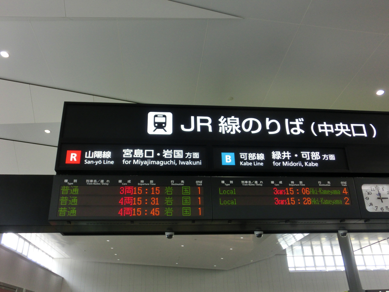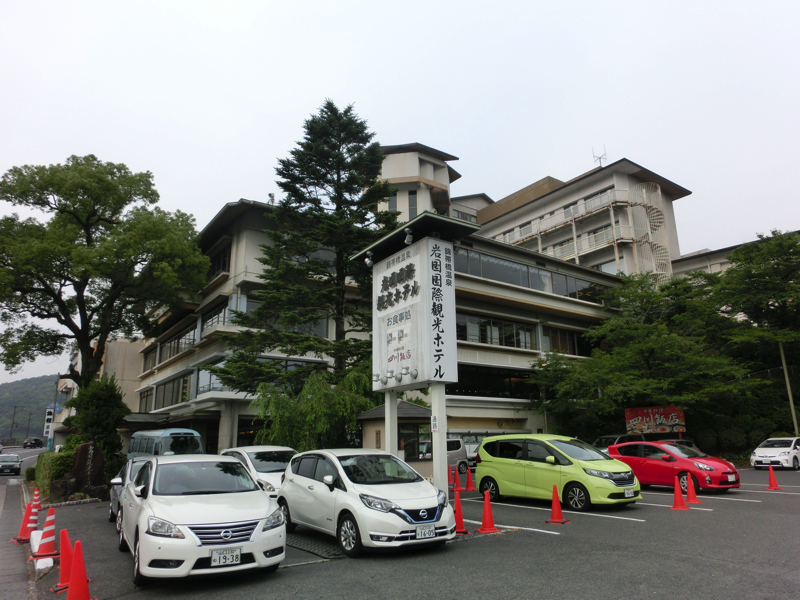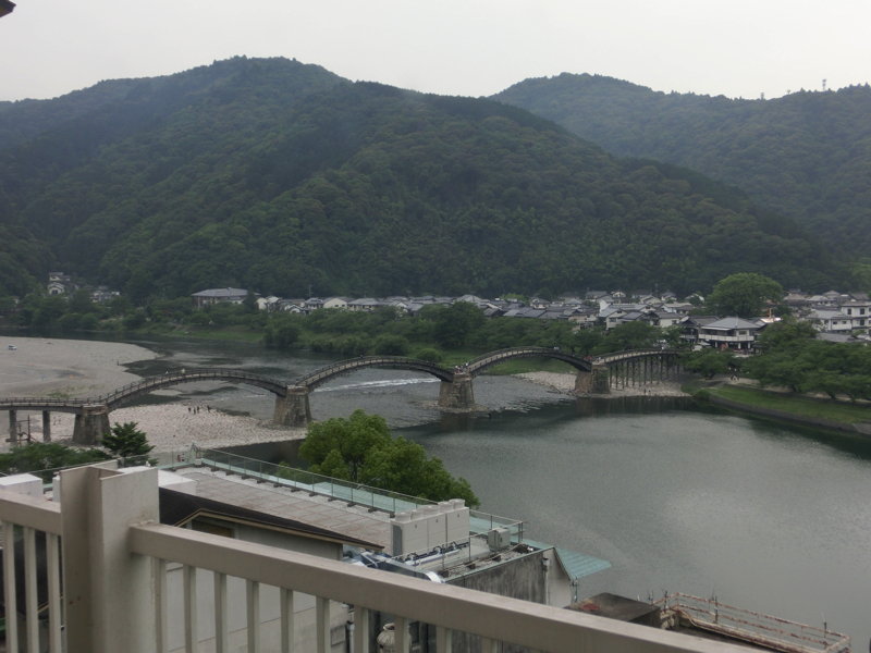 広島への社員旅行が終了。ということで、広島駅で会社の人たちとは別れ待ち合わせ。ここから岩国まで在来線で向かい、工事中の岩国駅からバスに乗って15分ほど、錦帯橋前にて降りる。ここから歩いてすぐの岩国国際観光ホテルが今日の宿。部屋は広く、錦帯橋を見ることができる。今は曇っているけれど、明日は晴れ予報なのでいい景色が見られたらいいな。ごはんまで時間があるので温泉へ行こう。その温泉の湯上りからも、しっかりと錦帯橋が見える。いい景色だな。 |