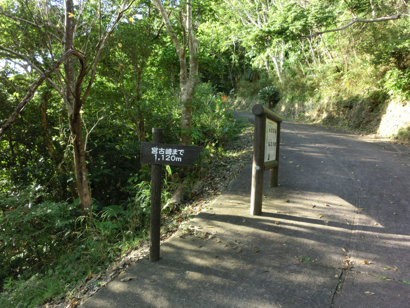 それにしても満腹。では次は、宮古崎へと向かいましょう。これも1時間ほどのドライブだが、街の中心の同じ交差点を何度も行ったり来たりしている感じ。昨日の夕日スポットへの分岐を通り過ぎ、海沿いや山道を走っていくと突然現れた宮古崎の駐車場。5台くらいしか停まれないが、ちょうど空いていてよかったな。では岬まで行きますか。海沿いを道なりに進み、開けた場所や木が生い茂った場所、坂道などを歩く。よく見ると道に黒いフンが落ちているが、これはどう見てもウサギっぽい。このあたりにはアマミノクロウサギがいるらしいので、きっとそうだな。夜行性なので今はなかなか見つけられないだろうけど、会えたらいいな。